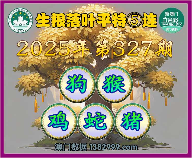 327期:【生根落叶】 🪢平特⑤连🪢【狗猴鸡蛇猪】开:狗44,猴22,鸡09,蛇37,猪31准